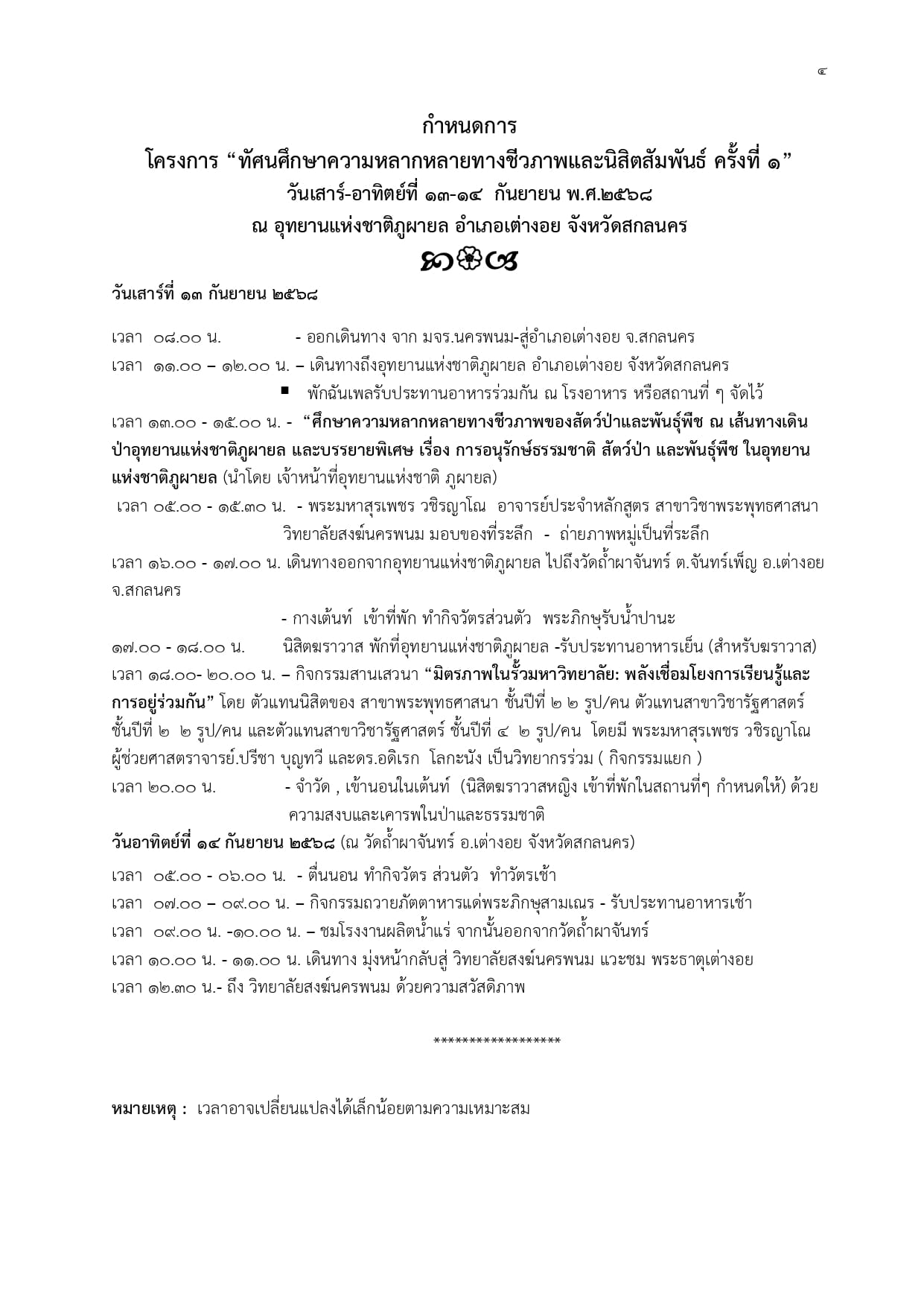 ทางชีวภาพและนิสิตสัมพันธ์ ” ขึ้น ณ อุทยานแห่งชาติผายล อำเภอเต่างอย จังหวัดสกลนคร ทั้งนี้เพื่อที่จะให้