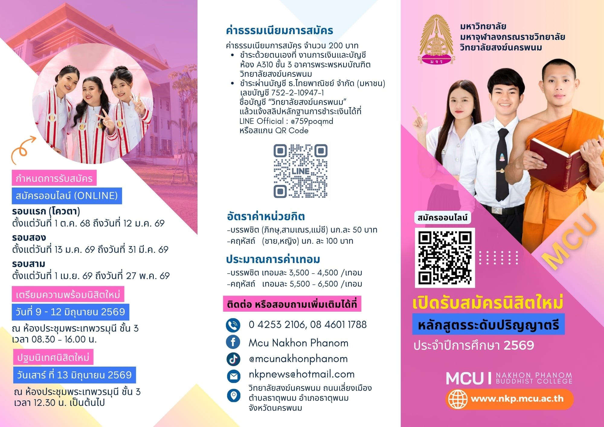 #เปิดรับสมัครนิสิตใหม่ หลักสูตรระดับปริญญาตรี ประจำปีการศึกษา 2569  รอบแรก มหาวิทยาลัยมหาจุฬาลงกรณราชวิทยาลัย วิทยาลัยสงฆ์นครพนม